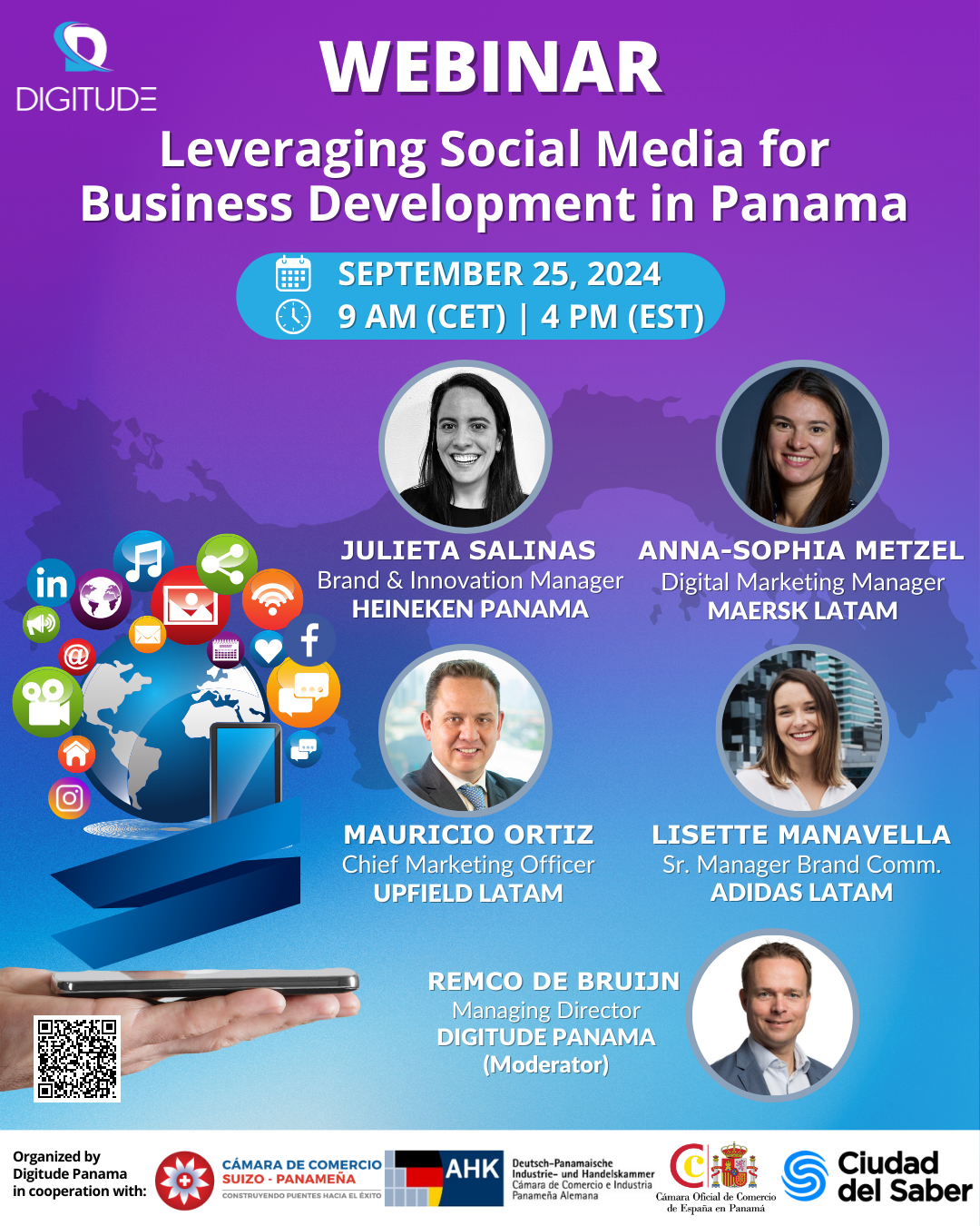 10:30 a.m. Hora Panamá. 17:30 – 18:30 p.m. CET